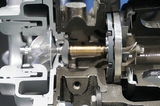 コンプレッサハウジングに水冷式を採用して高過給圧を実現し、可変ノズルによるワイドレンジ過給と組み合わせ、幅広い回転域での高過給が可能。